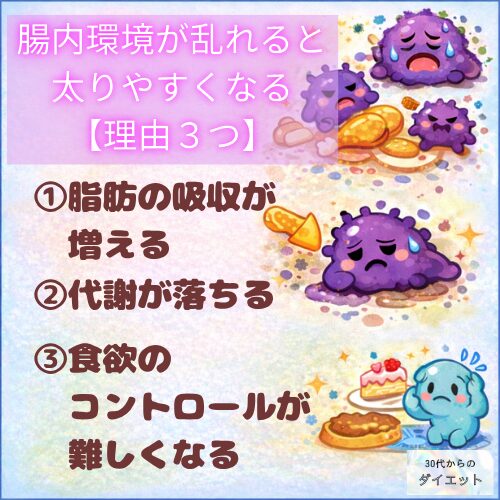 腸内環境が乱れると太りやすくなる【3つの理由】