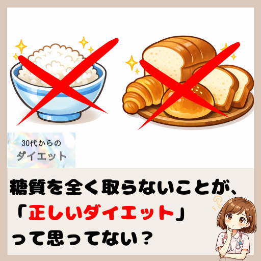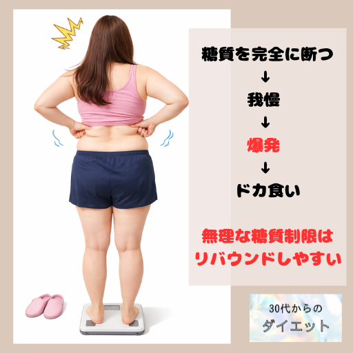 実は、過度な糖質制限は体にとってリスクになることもあります⚠️ 特に30代女性はホルモンバランスの変化もあり、無理な制限は逆効果になりやすいんです。